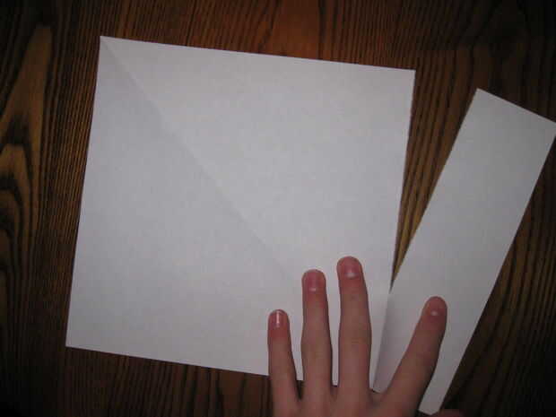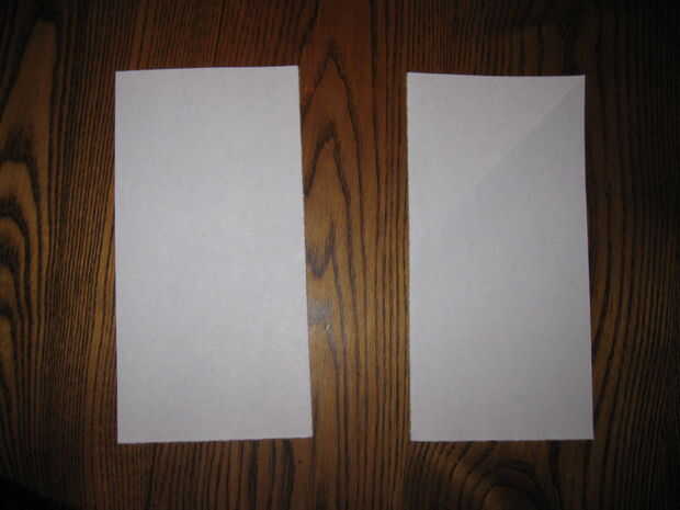 Utilice las instrucciones anteriores para separar el triángulo de la cortada, esto crea un cuadrado perfecto. Luego debe doblar la plaza por la mitad y separar las mitades. Ahora tienes dos mitades de un cuadrado y está listo para el siguiente paso.