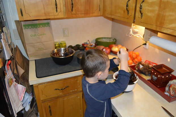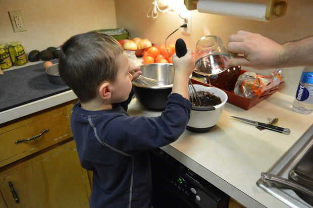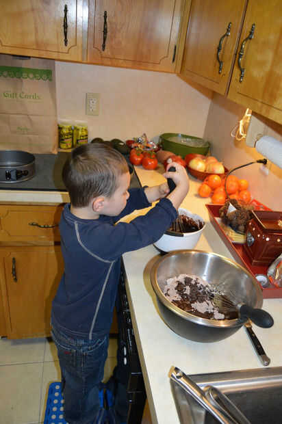 Mi hijo decidió haría una mezcla y pude hacer el otro. Utilizar la mezcla de brownie favorito desde una caja o desde cero. Usé 2 mezcla de brownie de chocolate oscuro de Ghirardelli. Una mezcla para cada bandeja circular de 9 pulgadas. Después de mezclar Coloque la mezcla en los moldes ligeramente engrasados y hornear hasta que los brownies estén en su punto de cocción deseado. Me gusta que sean un poco hecho y pegajosa. :)