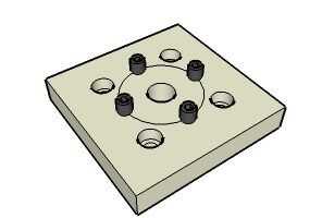 Si usted necesita una alternativa latheless, podía perforar la placa para tener 4 pasadores o toma de cabeza a Allen. Esto trabajaría para sostener la caja del pedalier en el centro. Sin embargo esto movería su línea central a 3mm del diseño anterior. Ver la tercera foto.