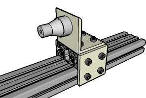 El extremo del cono es aprovechado para un tornillo de M6. Perforé el orificio en el soporte de ángulo ligeramente oversize que pude ajustar la ubicación exacta del cono para ajustar la alineación.