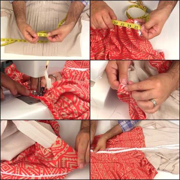 Coser la tela recogida y la camiseta Junta (derecho lados juntos)
