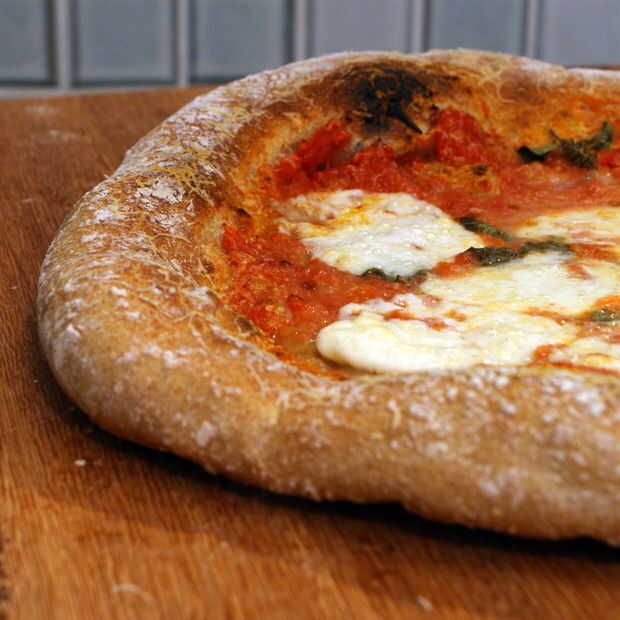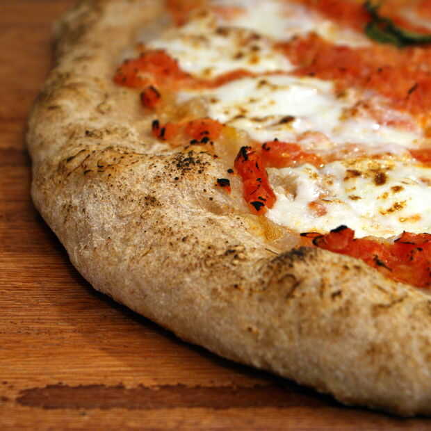 hacer cinco cortezas de pizza de 12 pulgadas con harina molida fresca de trigo integral. Utilizo un Nutrimill Molinero para moler encima de trigo en harina de trigo integral. Os dejo en el germen de trigo para beneficios de salud adicionales. Esta