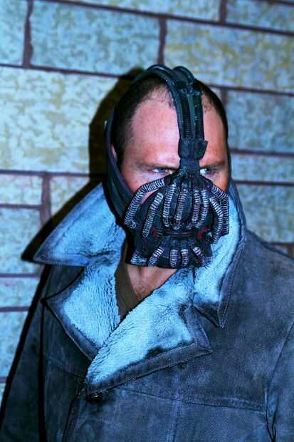 Para acabar el proyecto, he comprado una chaqueta de cuero de $10 que encontré en una tienda de segunda mano. Miré y miré uno que empareja el que está usado en la película pero no he podido encontrar uno. Después de varios viajes a la tienda, pensé, debo sólo ser Bane y encontrar uno que Bane le gustaba. "Soy Bane, que abrigo me gusta?" y encontró uno muy rápidamente. Bane paga a la señora en la parte delantera y era educado y dijo gracias.