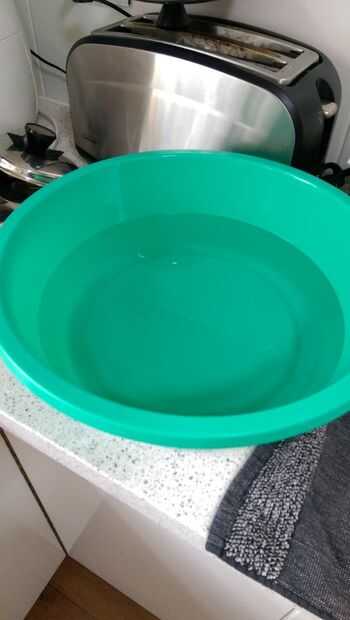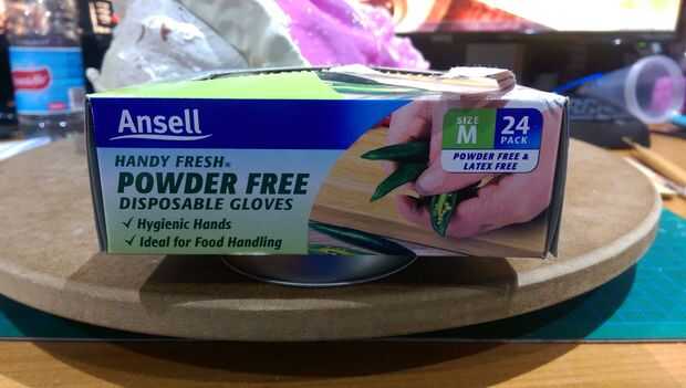 6. visor de materiales. Utiliza algunas láminas como el material de la visera de plástico de 0,5 mm PETG y había teñida con el tinte de la tela de iDye. Para eso necesita agua caliente, algunas cubetas y guantes de goma.