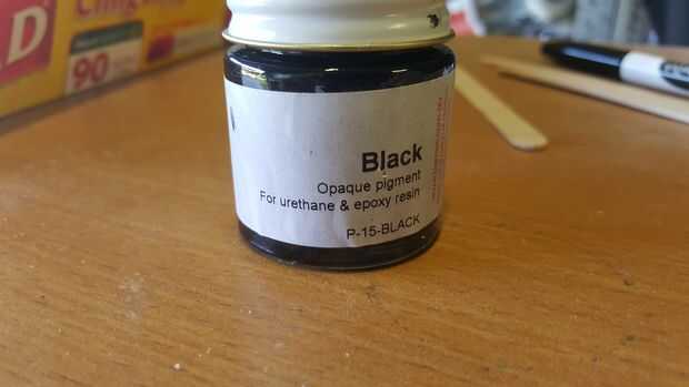 3. bastidor mediano. Resina de EasyCast es mi elección, establece muy rápido, curas blanco y 75 Shore dureza y es el producto local más barato para mí. También solía algún tinte de resina se color negro para parar el blanco de muestra.
