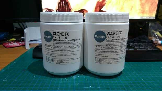 4. moldeado de los materiales. Yo uso Pinkysil como una capa fina para detalles finos y CloneFX como una capa más gruesa de la fuerza para evitar el desgarro.