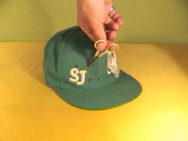 Corté unos agujeros con un par de tijeras pequeñas en la parte frontal (centro del sombrero) y algunos en los lados para obtener un haz ancho. (Fig. 2)