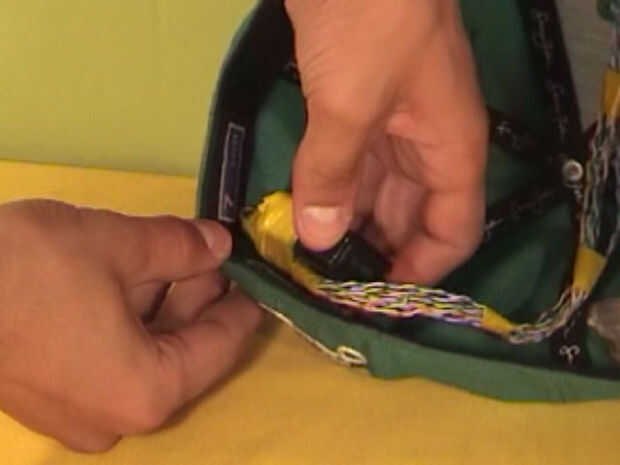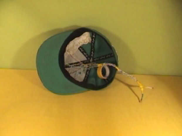 Coloqué la pila de 9v en el interior la parte posterior del sombrero, luego hicieron uso de algún bolsillo como material que estaba allí, para guardarlo de caer.