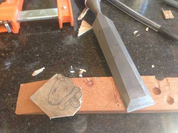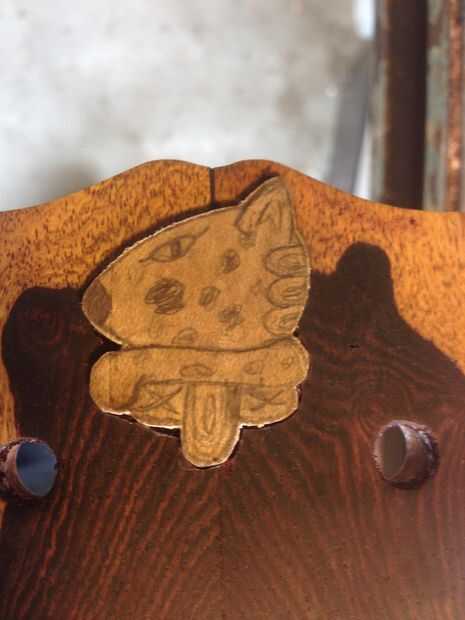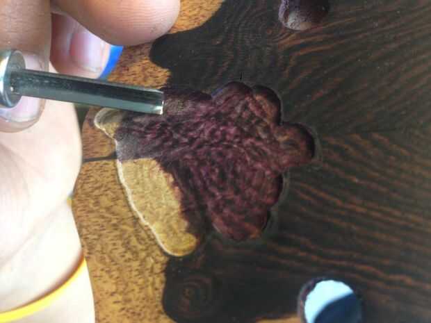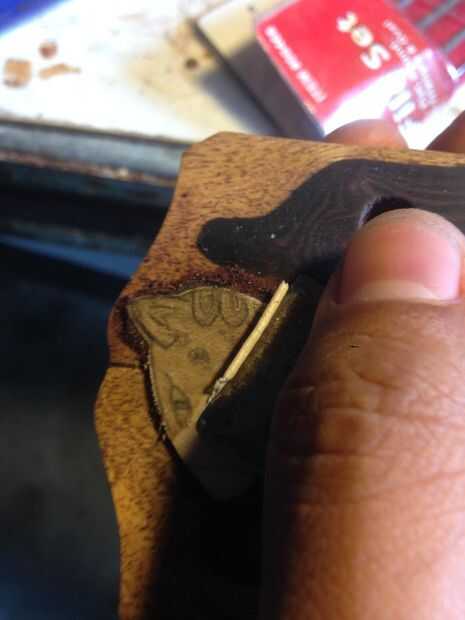 Paso 15 (opcional) - si vas a tener un logo en la guitarra ahora es un buen momento para cortar hacia fuera y su insignia en el cabezal del embutido.