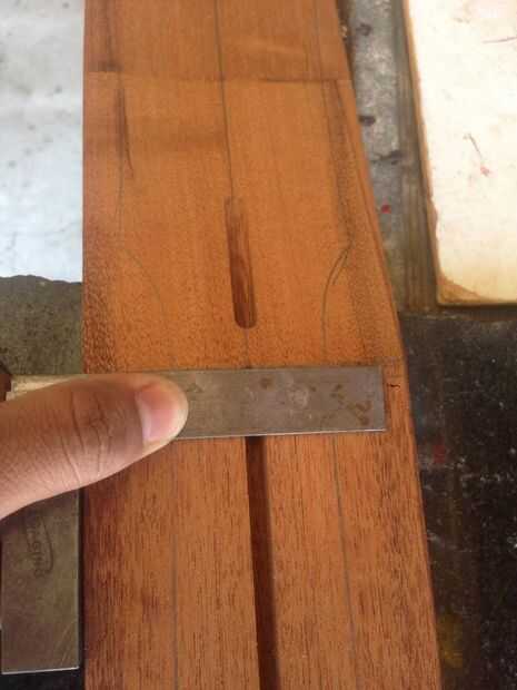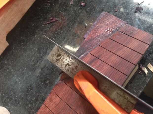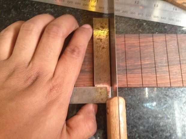 Paso 11(optional) - una vez ranurado desee enlazar el diapasón si es la medida caso su unión y calcular la verdadera dimensión de su diapasón con sus planes después de cortar su diapasón para que con el enlace tiene las dimensiones correctas.
