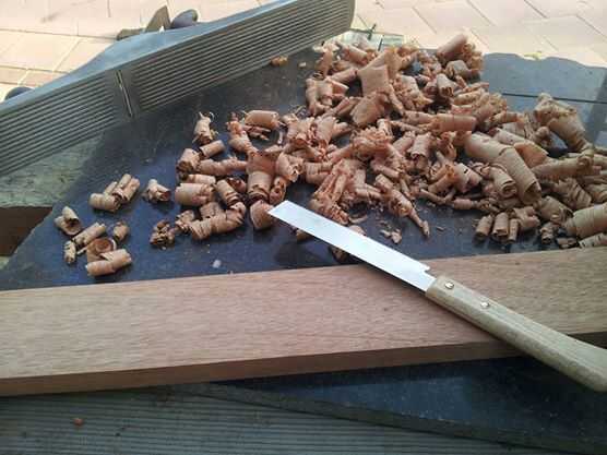 Paso 2-Si usted está construyendo un Oriente de cuello de pieza de 2 o más el grano de madera para que se ejecute vertical a la superficie de madera del cuello. Luego las piezas de cuello plano muerto plana usando tu avión de mano o cepillo y una plaza de ingenieros. el aplanador los dos articulados las superficies es más invisible la costura y más fuerte será.