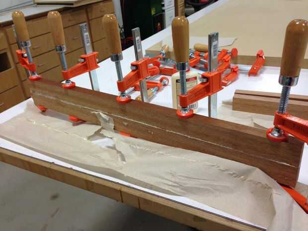 Paso 3: pegar el cuello para arriba si usted hizo un dos piezas o un cuello de 3 piezas, es importante poner su cuello con el grano corre verticalmente (esto se conoce como dura sólida) como esto va a crear un cuello de guitarra dimensionalmente estable. No rellene el cuello se seque durante al menos 3 horas aunque me gustaria esperar 24 horas solo para estar seguro.