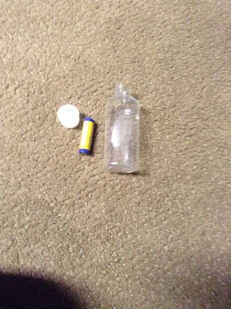 Tomar la botella y la batería. Poner la batería en la botella y cerrarla para arriba firmemente.