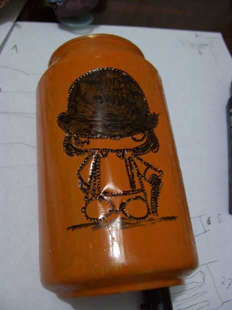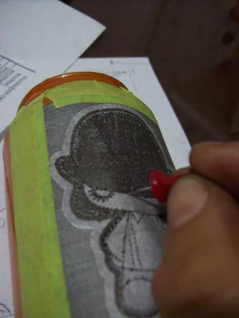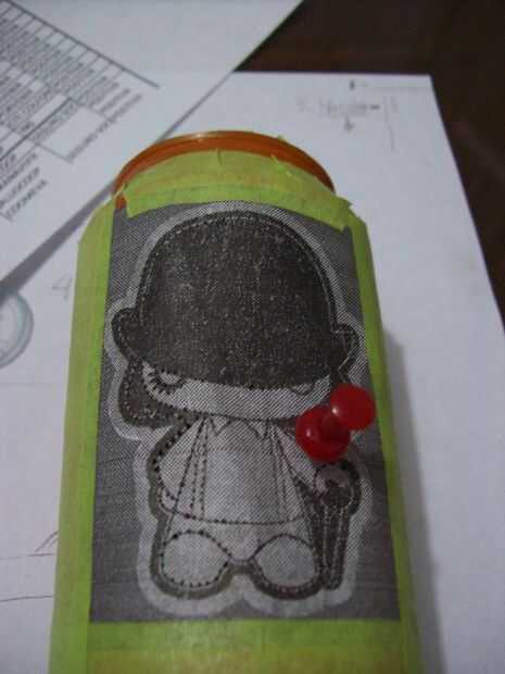 Luego arena lo arena, pintarlo, google alguna imagen o dibujar lo que usted quiere., pegar la imagen y empezar a agujero en el cuadro te quieren (yo usé un perno de la oficina.). Eliminar la imagen o dibujar y con un empate de sharpie el image.and agregar algunos detalles.