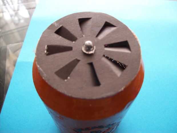 hacer un agujero en el centro y pegar un frasco de vidrio.