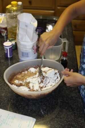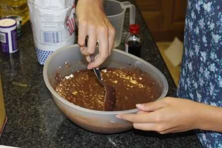 Coloque todos los ingredientes en la mezcla del tazón de fuente y mezclan juntos. Asegúrese de que todos los ingredientes se mezclan bien y que no hay burbujas con harina (esto no es una necesidad, pero mejorar la calidad de su producto final).