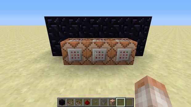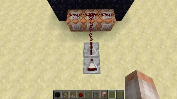 Colocar tres bloques de comando delante de la prisión. Poner el Redstone, repetidor de Redstone y comparador de Redstone como se muestra. Poner Redstone en los bloques de comandos sólo presionada la tecla Mayús y coloque su gran sustancia roja.