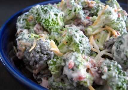 aquí es una receta sencilla y las instrucciones para hacer una ensalada de brócoli deliciosa con trocitos de tocino real. Espero que lo disfruten!Principales artículos necesarios:-1 lb de tocino-6 cabezas de brócoli-1 cebolla grande-2 tazas de queso