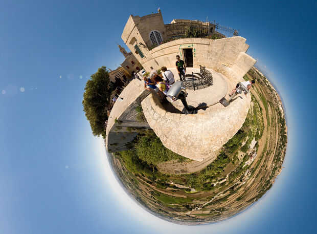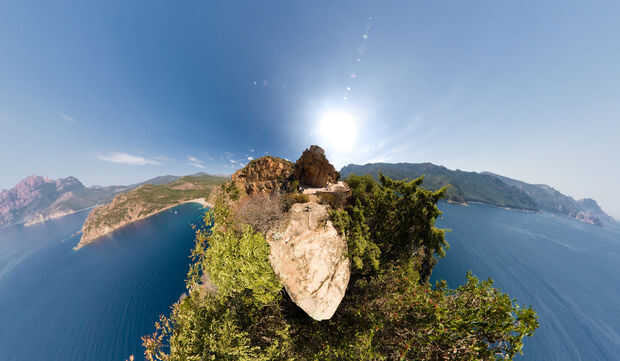 El primer panorama que se muestra ha sido tomado de una roca saliente en las Calanches de Corse, el segundo de ellos ha sido asesinado desde la parte superior de las paredes de la antigua ciudad de Mdina. Ambos son lugares elevados.