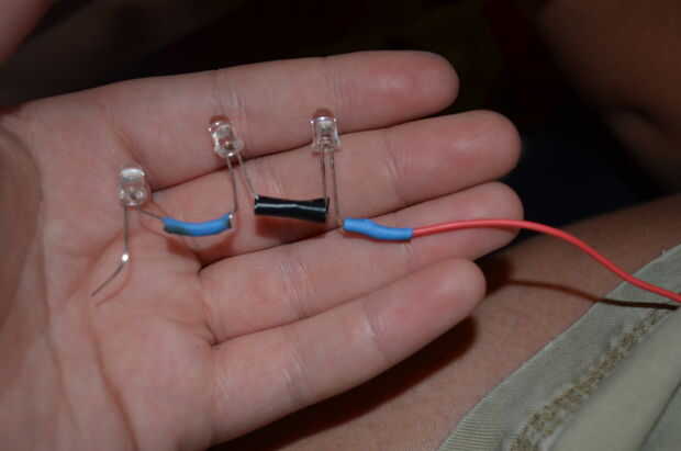 De la soldadura de un pedazo corto de alambre al cable positivo de tu instalación de LED. Uso de encogimiento de calor para sellar el acuerdo. Ahora soldar ese cable a uno de los cables en el conmutador. Quizá quieras usar del encogimiento del calor o cinta aislante alrededor de la conexión entre el alambre y el interruptor para asegurarse de que no toque el otro cable del interruptor.