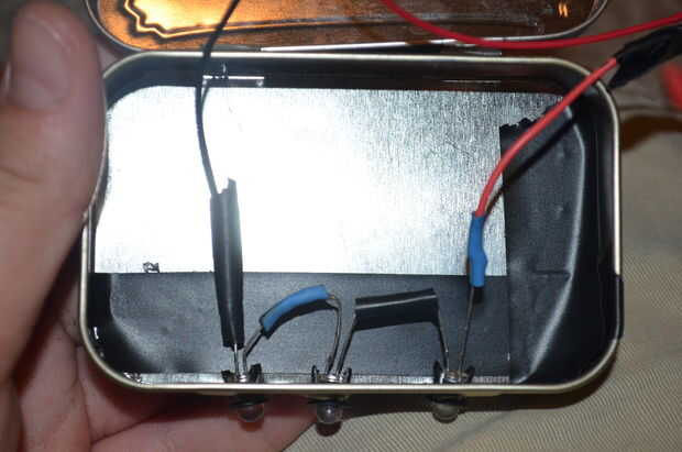 inspirado en los muchos proyectos de Altoids increíbles aquí y en Jameco y en revista, decidí probar una simple luz estroboscópica en lata Altoids estándar de construcción.Este proyecto consiste de cuatro LEDs blancos de 3 vatios conectadas a una bat