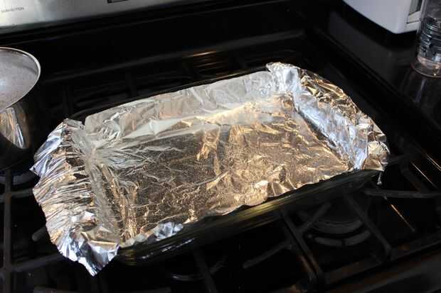 Preparar un plato para hornear de 9 x 13 pulgadas vidrio colocando un pedazo largo de papel de aluminio en la bandeja como un cabestrillo para sacar más adelante los brownies y engrasar con spray de cocina.