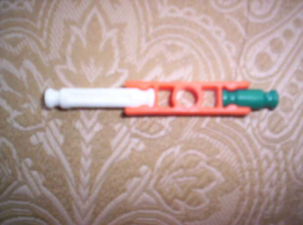 esta es una de las pistolas más pequeñas cada vez. Lo hice cuando llegué realmente aburrido un día. Realmente tiene un percutor y un gatillo! La pistola entera mide aproximadamente 2 pulgadas. Puede disparar pequeños pedazos verdes o blancos. Preferi