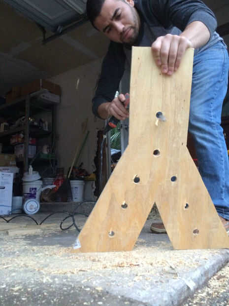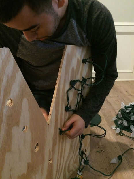 Mis amigos en The Home Depot me pidieron diseñar un proyecto de árbol de vacaciones fuera de la madera contrachapada como parte de su programa de talleres DIY. Quería diseñar un árbol que podía funcionar tanto fuera como un ornamento del patio o en e