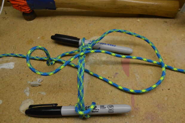 2. hacer un lazo y coloque el extremo de la cuerda debajo de las dos cadenas y en la otra una cadena.