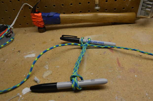 Se trata de un brazalete de paracord ajustable que se deslice en la mano y apriete para arriba. Mi hijo aprendió cómo atar pulseras de nudo Salomón usando clips de hebilla lado hace algún tiempo. Pero cuando una escasez de clip tuvo que adaptarse. Es
