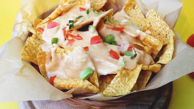 hace ya muchos años Ignacio Anaya primero subió con el innovador plato de nachos. Originalmente, él derrite queso sobre chips de maíz. Desde entonces, una salsa de queso, a veces llamada "queso de nacho del estadio" se ha convertido en popular