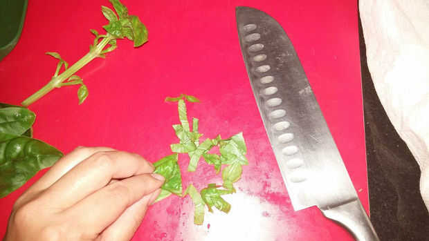 Paso 9: Mientras tanto, cortar la albahaca fresca