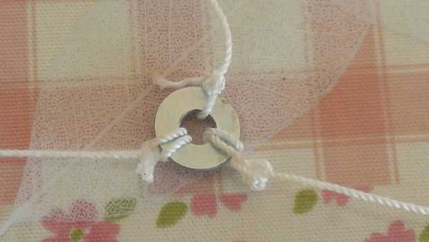 2) ate los cables de la lavadora, va a ser la base para atar en el espaciamiento igual de trampa.