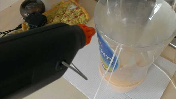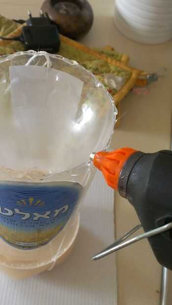 2) use su arma de pegamento caliente a la botella de dos piezas juntas. Asegúrese de que pegue bien y no deja agujeros abiertos.