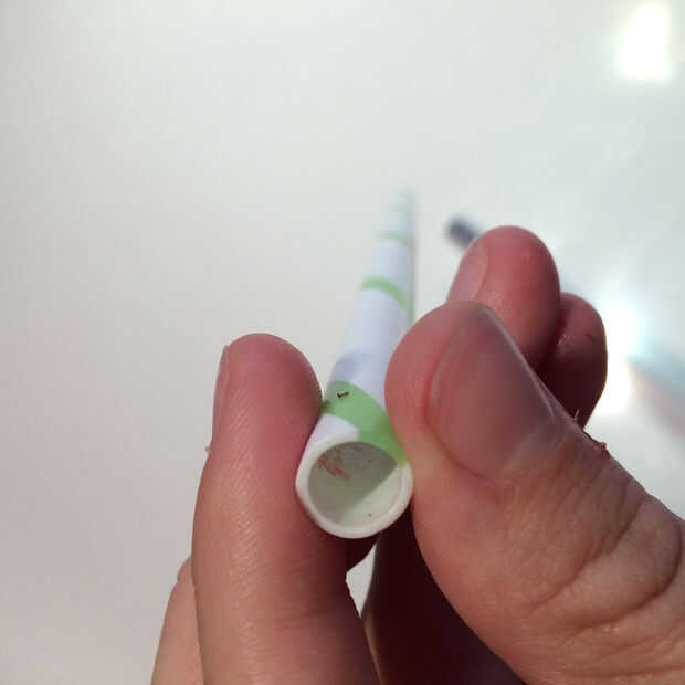 Presionar la paja hacia arriba a través del fondo de la fresa, como cerca del centro como sea posible.