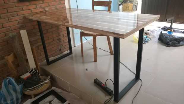 -Utilice tornillos de madera largos de 6mm y atornillar la tapa de la mesa y las piernas. Ser conscientes de tornillos más largos o usted conseguirá llegar a través de la superficie de la mesa, que no es muy agradable entonces.