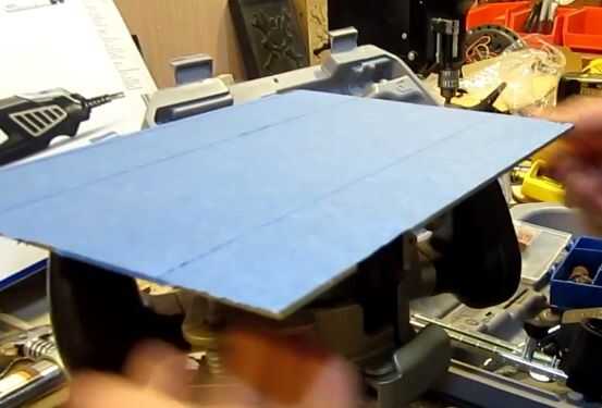 El movimiento de la máquina es todo sobre reutilización y reciclaje, así como electrónica. Para la construcción utilizamos un trozo de PCB para construir nuestra placa de superficie. Algunos pintores azul de la cinta, algunas marcas para alinear los agujeros para el router, y podemos empezar a cortar.