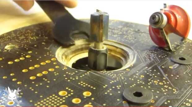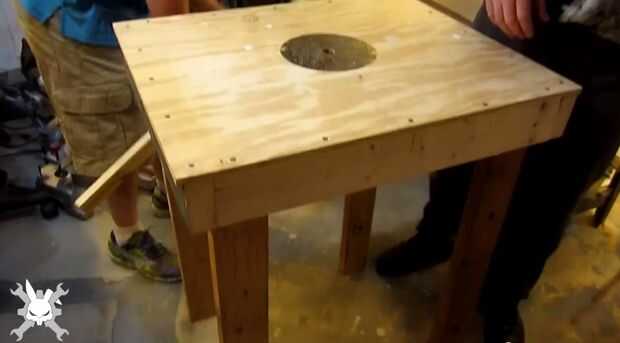 Una vez en el estado bruto, los últimos pasos perforar los agujeros para el router montar en, estabilizar las piernas. y montar el router. Una característica clave es dejar espacio para la broca a ser cambiable de arriba, así que tuvimos que el agujero central un poco más grande para permitir la llave en la ruta.