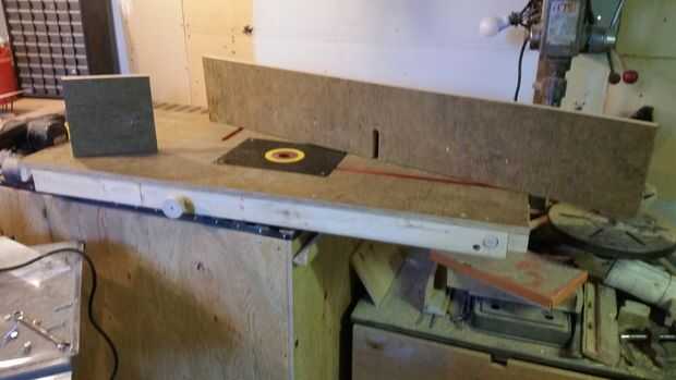 Ya que me parece que ampliar mi tienda como permitirá el poco espacio, decidí que quería una mesa de fresadora. El problema es que no tengo espacio para establecer un stand de router. Necesito una mesa de fresadora que se fuera de mi camino cuando no lo necesita así que esto es lo que se me ocurrió. Con 2 patas y una cala francés sosteniendo a mi abajo tabla de bosquejo, es bastante estable.