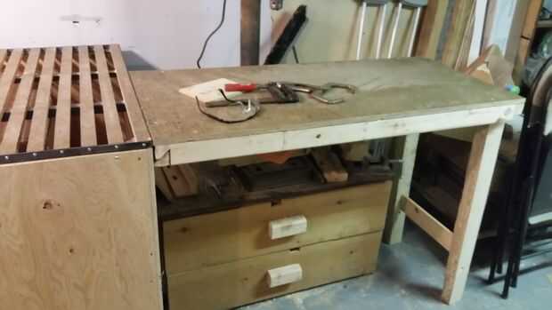 He usado los 2 2 x 2 x 22 y corte francés calas. Los cortes irregulares dan un color ajuste apretado en la parte superior del proyecto de abajo de la tabla y mantiene la parte inferior la mitad baja y fuera del camino cuando la mesa de fresadora se almacena lejos. Los cajones en la foto 2 son la base de mi taladro. Como he dicho, pequeña habitación