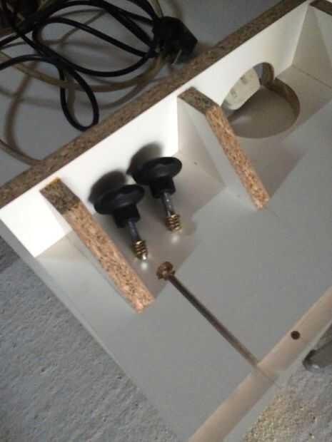 Hacer una mesa de router barato que se almacena fácilmente.Paso 1: superficieUso tabla de MDF y tiza para la superficie.Paso 2: Placa Base Comprar o hacer una placa base del router. Colóquelo sobre la madera de superficie y tornillo de trabajo alrede