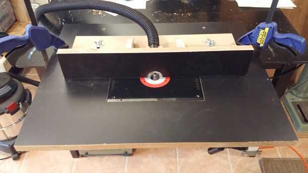 Una mesa de fresadora + router llegó a la venta localmente (similar a este), por lo que recogió, pero no había esperado a cuanto espacio tomarían sobre mi mesa de trabajo. Sin embargo, mi sierra de mesa tiene una extensión que realmente no estaba hac