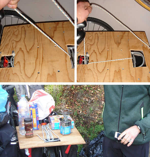 Ahora que su rackatabla está listo, tienes que asegúrese de que saber cómo conectar confiablemente en su parrilla con sólo una cuerda. Asegúrese que está apretando la cuerda de manera que la madera contrachapada se empuja otra vez los estantes. Compruebe cómo la mina. Quedamos muy bien durante 5 días (no los agujeros en el centro).
