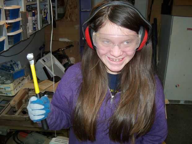 Encontrar algunos concreto en, probamos el Banco de trabajo, pero la superficie estaba dando demasiado para este tipo de trabajo. Asegúrese de que usted está usando protección para ojos y oídos.