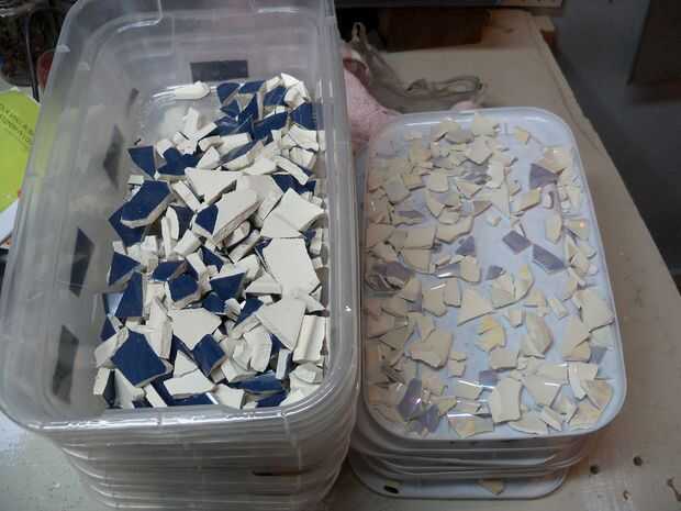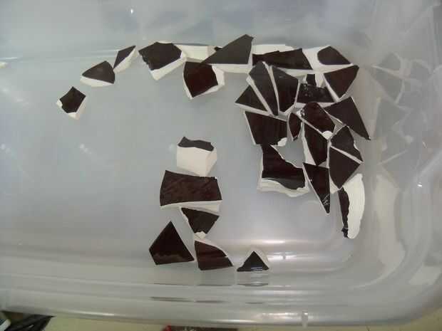 Tratamos de obtener piezas de tamaño regulares de la primera placa, pero después que nos dimos cuenta de que tener una variedad de tamaños de fragmento probablemente sería mejor y no preocuparse por romper cada pieza grande o tirar los minúsculos. Esto fue muy divertido, pero al final incluso India era cansada de romper cosas!