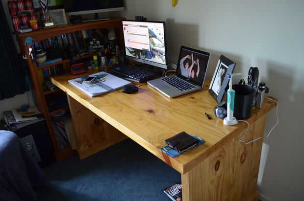 El escritorio que tengo en mi habitación es particularmente promedio. su increíblemente débil y rocoso, se ve barato y desagradable y es demasiado corto para poder sentarse cómodamente en el! (Yo soy) 6,3" para solucionar el problema decidí con la ayuda de mi papá que sea mucho mejor para que coincida con el mi cama que hicimos no hace mucho tiempo. eran las cosas que quería para este escritorio.