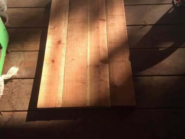 Empezar haciendo la mesa superior colocando juntos lo cuatro 60 cm X 8 cm X 1 cm paralelas entre sí.
