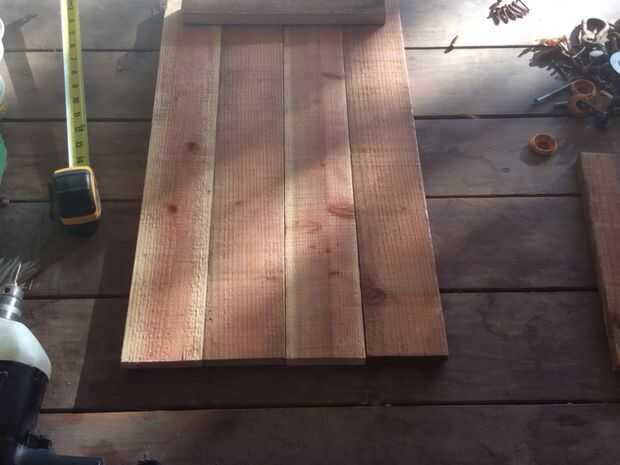 Coloque uno de lo 46 cm X 5 cm X 1 cm debajo de la tapa de tabla, perpendicular a la tabla superior, en uno de los extremos.