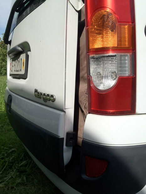 Tener abiertas las ventanas durante la noche sí es conveniente y cómodo, pero si llueve mucho el agua entrará en el coche. Construido este pequeño espaciador para garantizar tengamos aire fresco aun cuando llueve. Un extremo se puede abrochar en la cerradura de la puerta de atrás y el otro a la puerta. COn esto instalado la puerta está abierto de 10cm, pero todavía puede cerrarse como si estuviera cerrada 100%. Lo ensayamos durante una tormenta y todo estaba seco en la mañana.