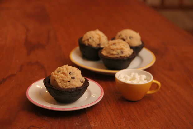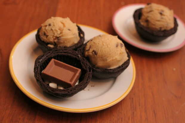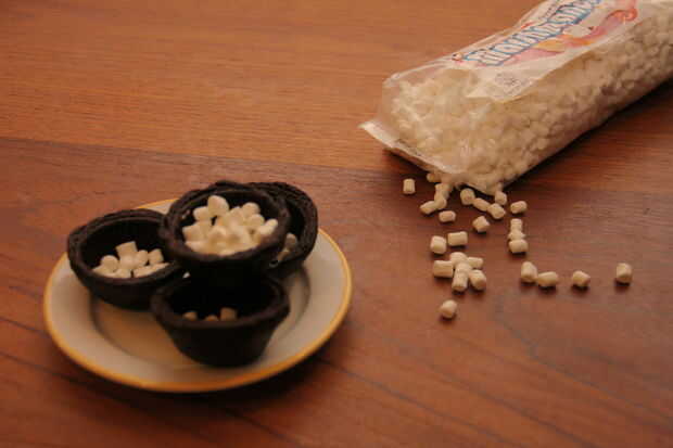 Esto es realmente suya, (pero sería acampar sólo como excusa para coma smores) por lo que llena la parte inferior de mis tazas de mini malvaviscos y un cuadrado pequeño de chocolate. Luego cúbralo con una cucharada de esa masa para galletas increíbles. ¿Puede detectar lo mickey oculto?